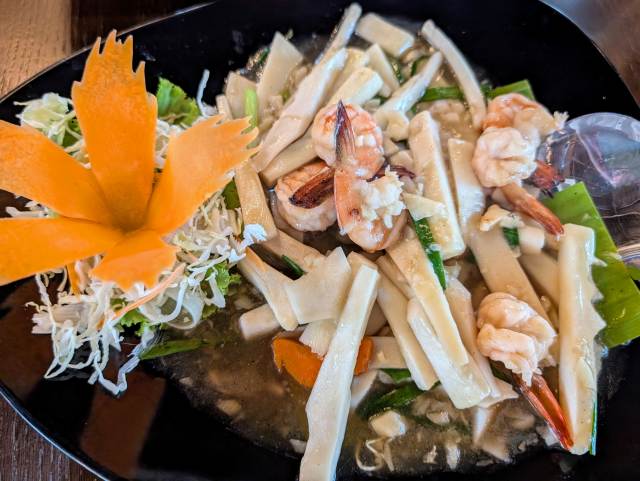 タイの恵み3選(ココナッツの若芽、ハヤトウリの若芽、生ふくろ茸)の炒め物