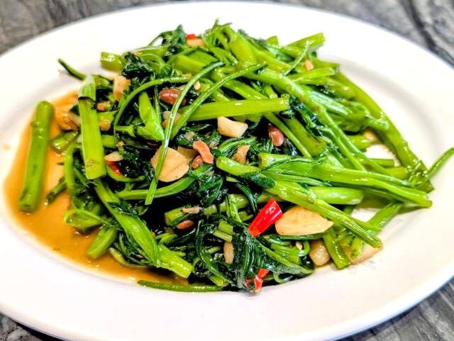 今回のバンコク滞在中に何度か注文したのが「空心菜炒め(パッ・パックブーン)」。タイ料理を食べ続けていると1品ぐらい野菜系の料理が欲しくなる。···
