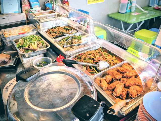 ランチがタイ料理惣菜7種から盛り合わせで選ぶスタイルの「ガパオ カオゲーン」(秋葉原と浅草橋の中間あたり。三井記念病院近く)に再訪してきた。···