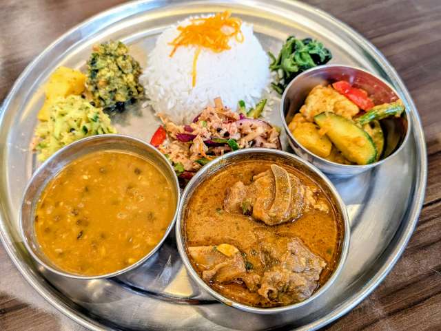 ネパール料理「ピプレー」(春日・えんま通り)で「骨付きラムのダルバート」